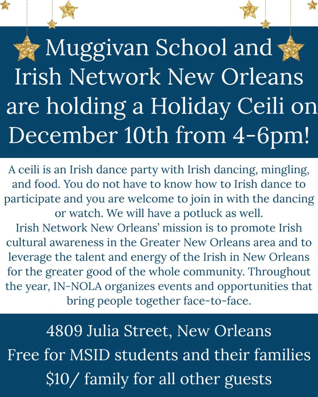 Join us on December 10th from 4-6pm at our New Orleans studio for a Holiday Ceili!